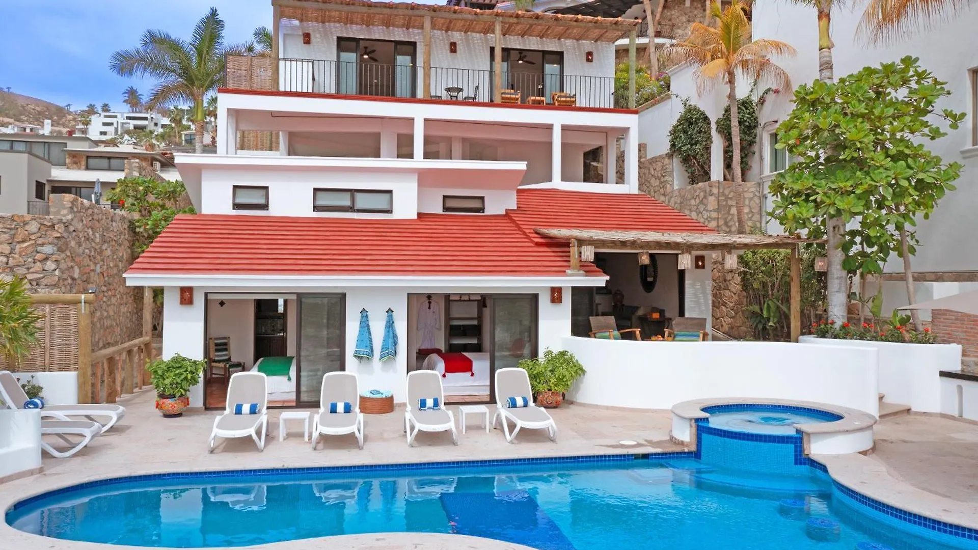 Also, the villa is about 20 minutes by foot from Puerto Paraiso Mall and around a 10-minute drive from Pedregal de Cabo San Lucas.